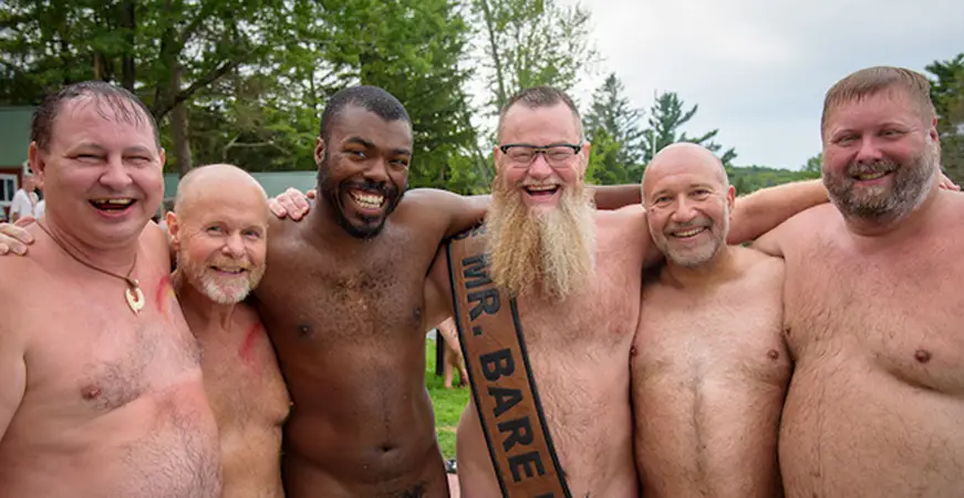 There are lots of activities to join in or just relax. Hiking , canoeing, leather culture, swimming, relaxing on the porch and guy watching. Also afternoon Happy Hours. There are two dining halls, an auditorium for evening performances, bingo, and workshops. Also a leather goods store on site.
